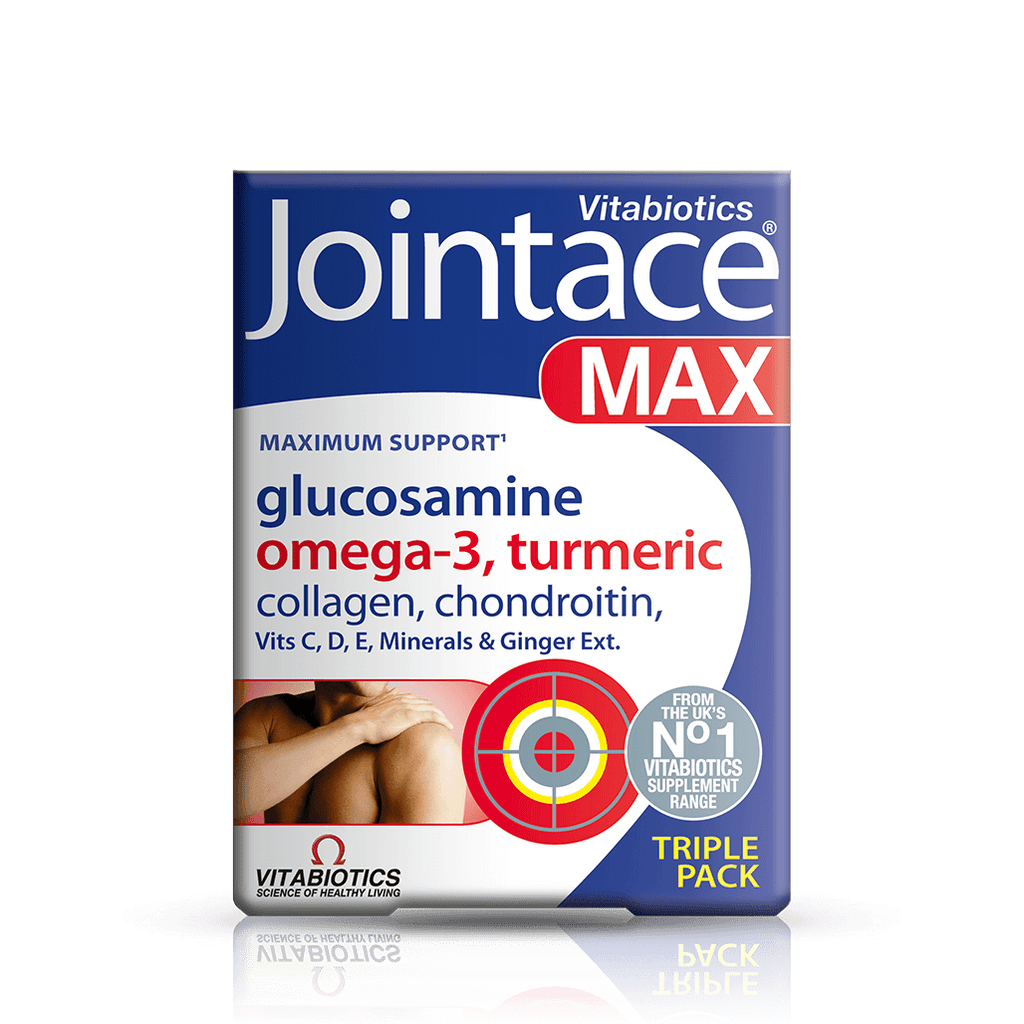 Good things come in threes – and Jointace Max gives you triple support with Collagen, Glucosamine, Turmeric, Chondroitin, and super-strength Omega-3 in one box.